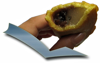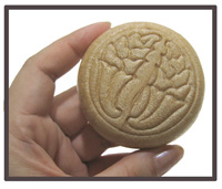 最中の模様は家紋の杏葉(ぎょうよう)