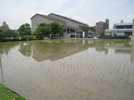 昨日、図書館に向かったのですが田んぼに苗が植えられていました、