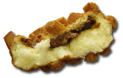 油っこい揚げパンで、少々辛めのカレーが入っています、