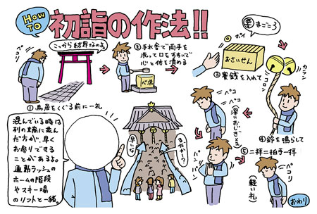 ところで、初詣の作法の面白い年賀ハガキ印刷用イラストを見つけました♪