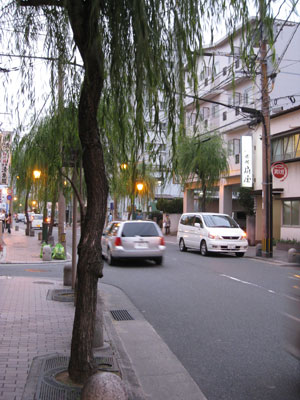 二日市温泉の通りには、あん子が大好きな柳が街路樹として植えられています。