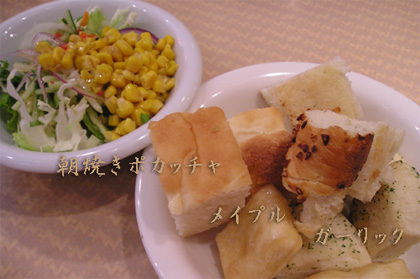 パスタが来るまでには少々お時間がかかりますので、サラダとパンを頂きますの