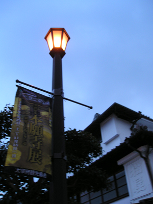 見上げた街路灯に「本願寺展」の垂れ幕