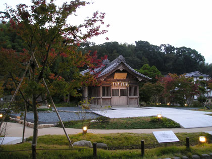 夕暮れ時、浮殿のライトアップが秋の切ない感じに思わせます
