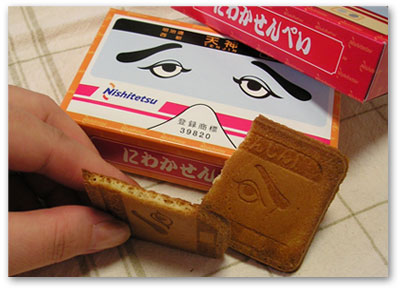 その半面を形どった、ユーモアあふれる煎餅が二〇加煎餅です。