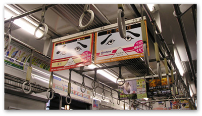 車両の中刷りに「にわかせんべい」のチラシがユラユラ~