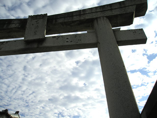 鳥居の下から、おはようさん! 朝からお天気ですし、雲がすばらすw~ぃ。