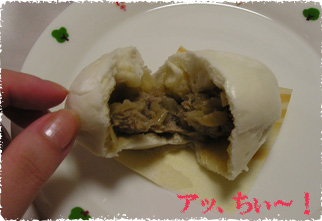 豚まんの中から汁が流れてきますので、食べるときはご注意ください。