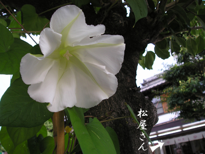 夕方、太宰府天満宮参道脇に植えてある「夕顔」が咲きだしました