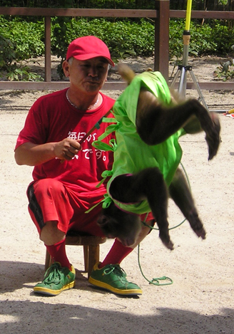 お猿さんの宙返りと共に、お客の歓声 「うぉぉ~ぉ!」