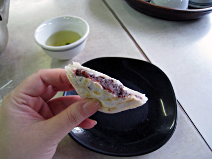 ↓のお餅は甘木屋さんの梅ヶ枝餅です。