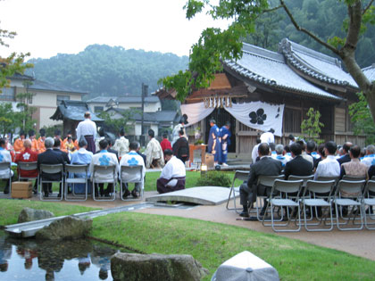 このあと、浮殿で「ささら」・「絞め太鼓」・「横笛」の三楽器が用いられた