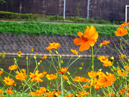 太宰府市役所の裏の川沿いのコスモスでも見ながら、、、