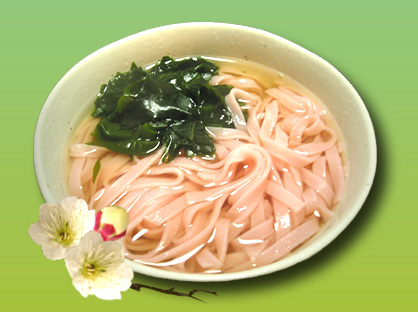 きしめん風の平たい麺でほのかに梅の香り、梅の味は確認出来ず