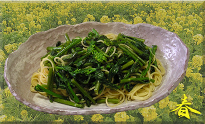 お昼ご飯は、頂き物の菜の花でパスタにいたしました