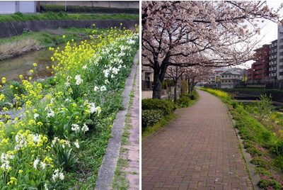 太宰府市役所の裏の川沿いは遊歩道があります
