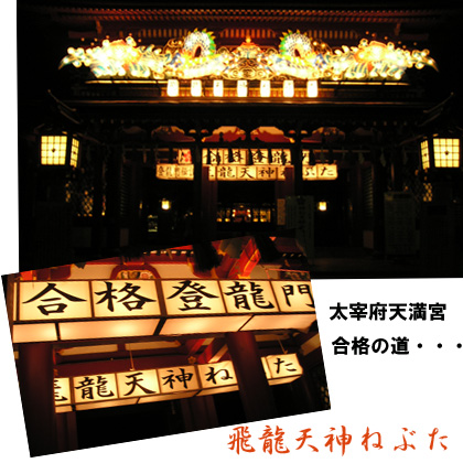 楼門に「登竜門伝説 飛龍ねぶた」が掲げられて幻想的な世界が広がっていますの