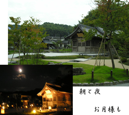 まだまだ緑も美しい昼間とライトアップされた夜、お月様もこんばんわ。