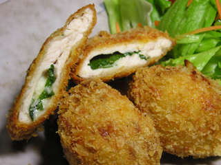 お肉がたっぷり入ったジャガイモコロッケとチーズささみカツ