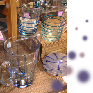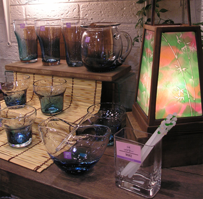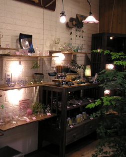 ガラスの雑貨小物とアクセサリーなどを扱ってるお店ですの。